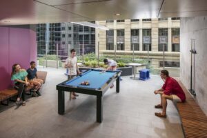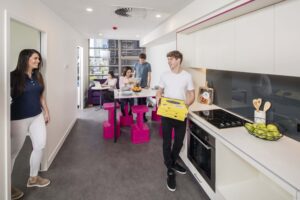 学生達が「第2の家」としてくつろげるよう、細部まで考え抜かれた「学生リゾート」のような究極の施設。広々とした屋外BBQエリアや映画ルーム、ゲームルームなど、学校以外の時間でも国際交流の機会がたくさん持てる環境になっています。また、24時間スタッフ常駐で初めての留学でも安心です。